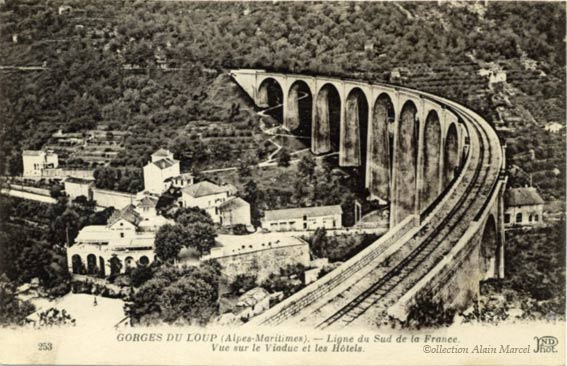 "Le 24 août 1944 à 5 heures du matin le coup de grâce eut lieu pour cette ligne. Le lendemain de la libération de Grasse, un petit commando allemand déclenche des charges explosives sur trois grands ouvrages de la ligne du Central Var : le viaduc du Loup (4 arches détruites), le viaduc du Pascaressa (près de Tourettes, 2 arches détruites) et le splendide viaduc métallique de la Siagne (2 travées détruites, la troisième restant suspendue dans le vide). Le pont de la Manda fut lui aussi partiellement détruit."